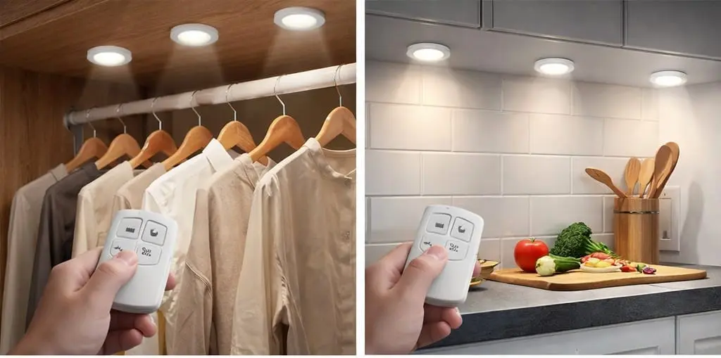 ✨ Beneficios destacados ✨ ✅ Ilumina al instante cualquier espacio oscuro. ✅ Control total sin moverte: enciende y apaga con el control remoto. ✅ Ahorro de energía con luz LED eficiente. ✅ Instalación fácil: pega, coloca y listo. ✅ Perfectas para cocina, clóset, baño, escaleras o escritorio.